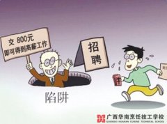 毕业生们踏出校门后都是求职心切,这使得各种骗子有机可乘,各种骗术、求职陷阱层出不穷。 强收保证金培训费 职场顾问指出,正规企业是不会向求职者收取任何费用,如培训费、保证金等,也不会以便于管理的名义扣压求