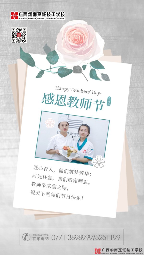 今天是2020年9月10日,我国第36个教师节,广西华南烹饪技工学校祝全体教职工们节日快乐!