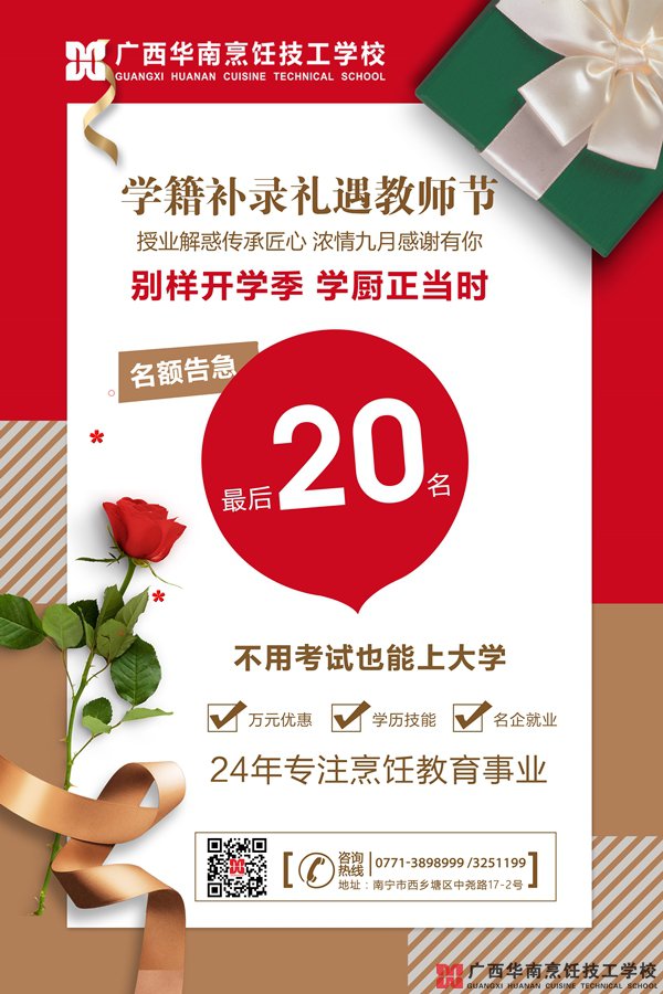 千里马常有,而伯乐不常有,想要成功,优秀的领航人不可或缺,华南烹饪学籍注册名额限量补录中,如若你还在求学徘徊之中,不妨与我们相遇。