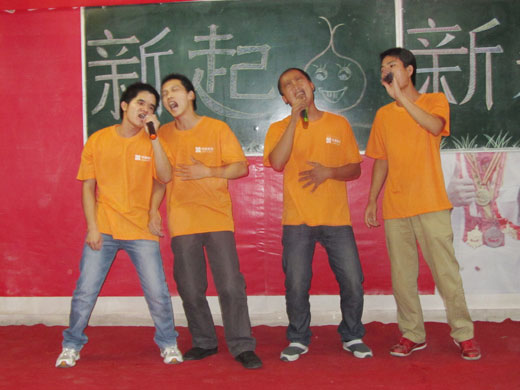魏主任致辞 2011级新同学演唱歌曲《我的未来不是梦》 老生代表歌曲《朋友》 新老学生互动游戏《吹气球比赛》 小品《求职故事》 8月26日晚,广西华南烹饪学校举办2011大厨精英班级及新生联谊晚会。晚会全程由学生自己