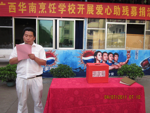 2010年7月18日,广西华南烹饪学校大厨精英班期末阶段性热菜宴席比赛在烹饪校区大厨精英实训厅展开。本次比赛是我校本着坚持以就业为导向,深化教育教学改革,不断提高职业教育质量办学方针的具体表现。比赛受到我校
