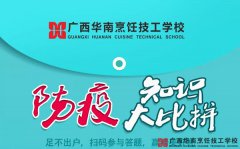 尊敬的各位学子及家长: 自新型冠状病毒感染的肺炎疫情发生以来,广西华南烹饪技工学校一直高度重视,坚决担负起社会责任,积极开展校园卫生防疫工作,确保师生安全。恰逢新春佳节,为了保障广大学子与家长以及全体