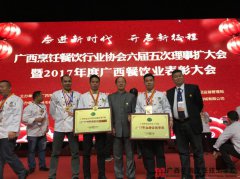 2018年1月23日上午,广西餐饮行业协会2017年度先进表彰大会在明园新都大酒店隆重召开了。我校被授予广西餐饮业校企行合作成就奖、金牌会员单位这无疑为我们今年的高速发展打了一剂强心针。我校大学路校区主任黄盛、