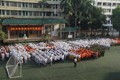 8月26日下午,广西华南烹饪学校2016级为期一周的秋季新生军训进入尾声,军训汇演隆重举行。5支队伍按顺序沿操场排开,接受了年级领导的检阅。一支支队伍通过主席台,稍息、立正、停止间转法、齐步及跑步的行进与立定